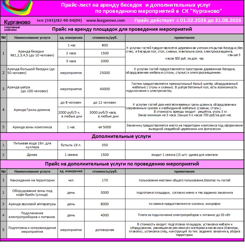 База отдыха «Курганово» вблизи г. Екатеринбурга (30-й км Полевского тракта до с. Курганово, 15 км от границы г. Екатеринбурга) предлагает комфортный загородный отдых вдали от городской суеты.