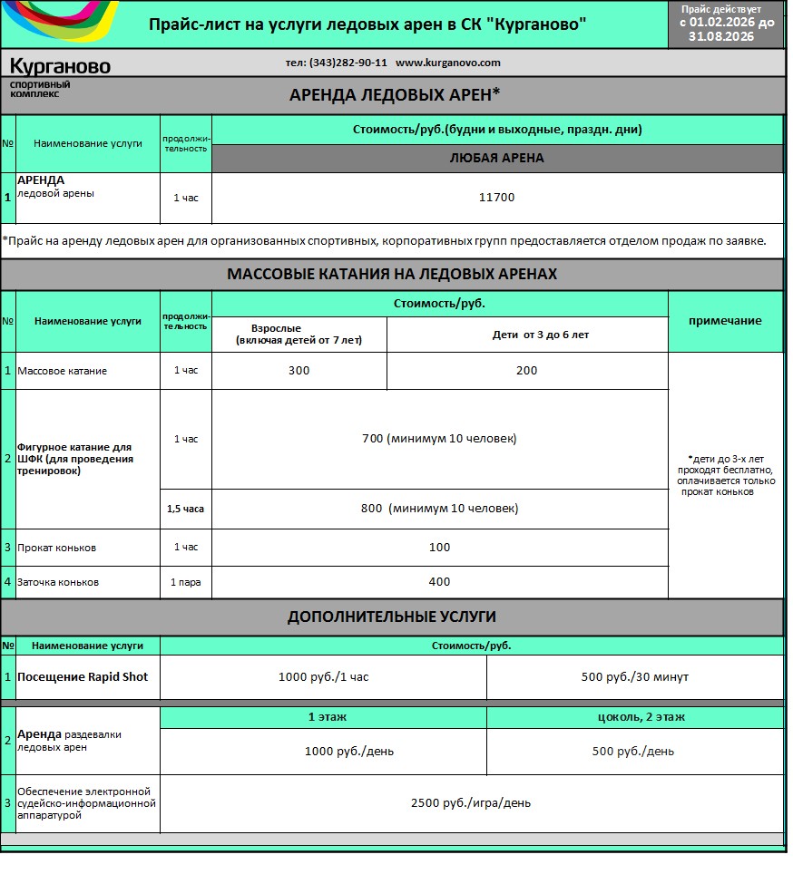 - Прокат спортинвентаря (коньки, мячи, ракетки, лыжи и др.)